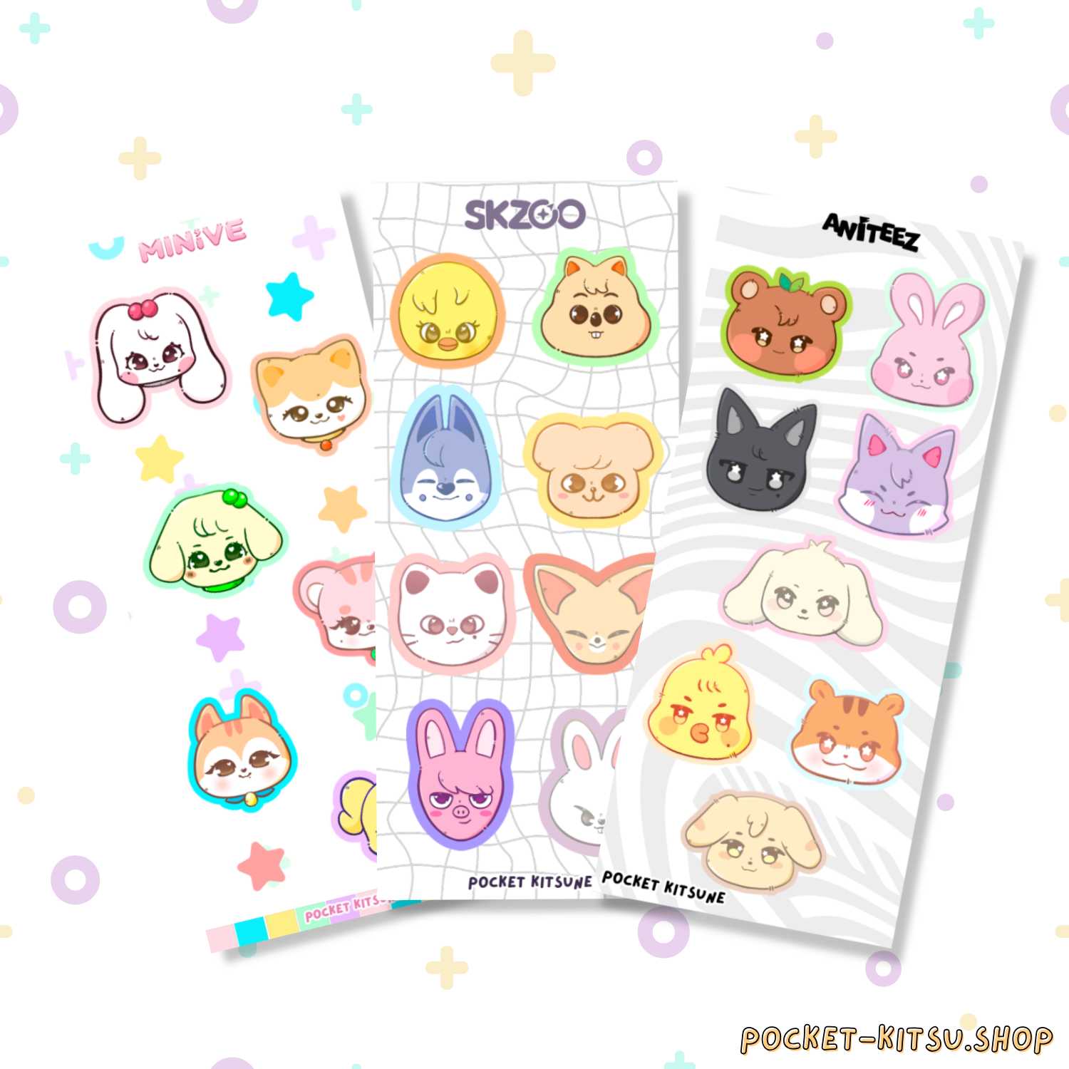 K-pop Sticker Sheets (MINIVE, SKZOO,ANITEEZ)